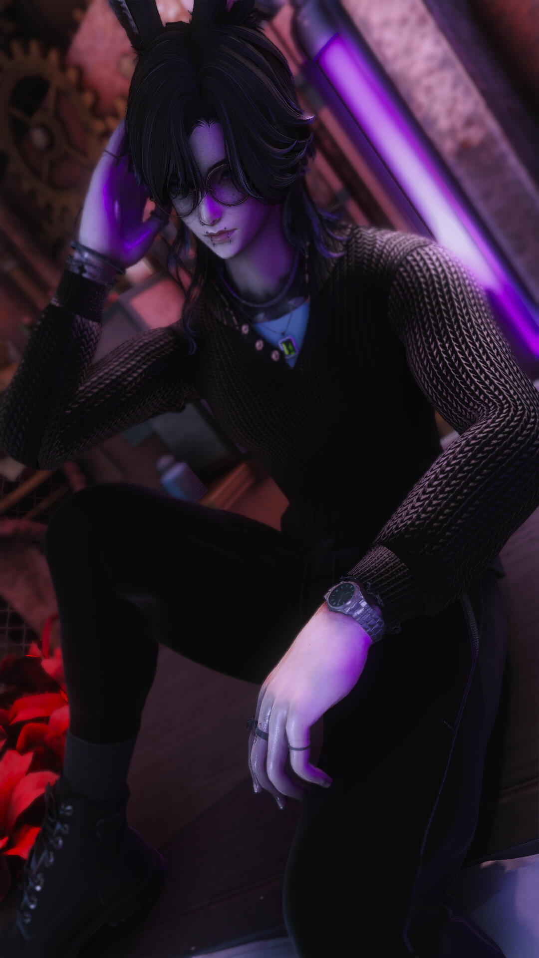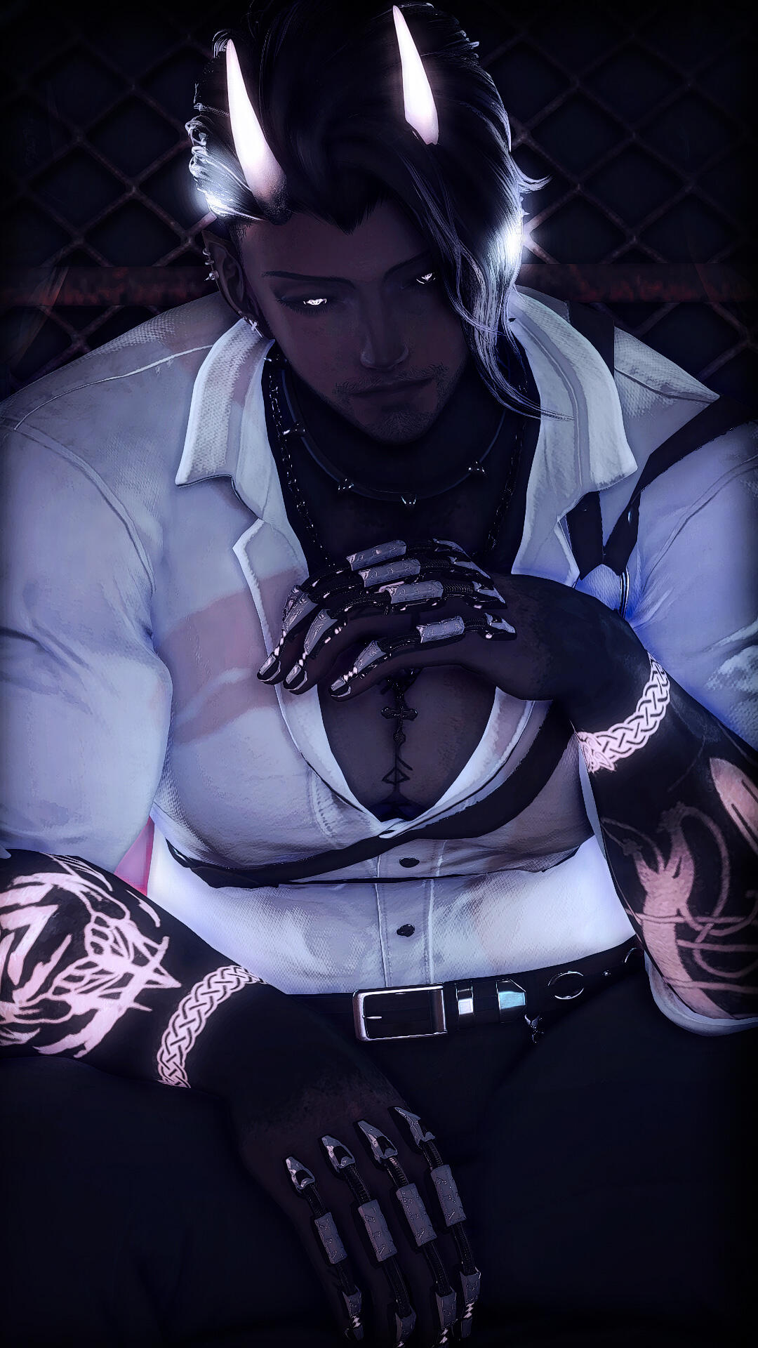 Role - DominantThe Ripperdoc of Night City, no one actually knows why Vox chose to frequent and work in the escorting business; some speculate that he takes advantage of the intimacy to rip some organs or parts out of his vic-- I mean clients, some think that he uses this as a front to perform his illegal cyber-enhancement jobs under the NCPD's radar. The truth of the matter is that this hulking behemoth of a man primarily comprised of chrome & hate is there, waiting for an unsuspecting "client" to look his way.